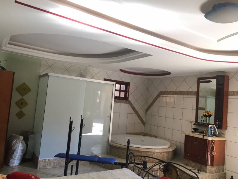 Vendo sobrado 3qts sendo uma suíte, 2 salas comerciais em baixo ,suite com hidromassagem separada do sobrado para visitas , piscina grande , área de laser com churrasqueira, garagem para 4 carros , dispensa , frente com acabamento na pedra fria , lavanderia , cascata...